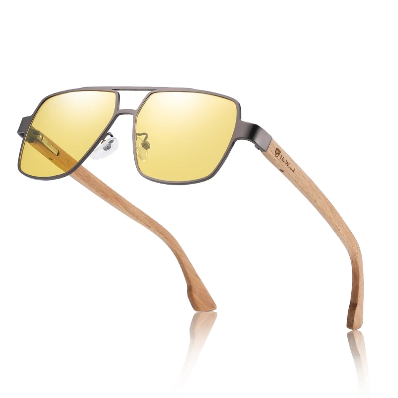 Hu Wood Classic Polarized Sunglasses Men Brand Designer Sun Glasses Travel Driving Square Night Vision Glasses Eyewear UV400