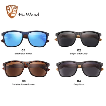 Hu Wood Square Sunglasses Men Brand Design UV400 Sun Glasses For Men Retro Driving Sunglasses Polarized